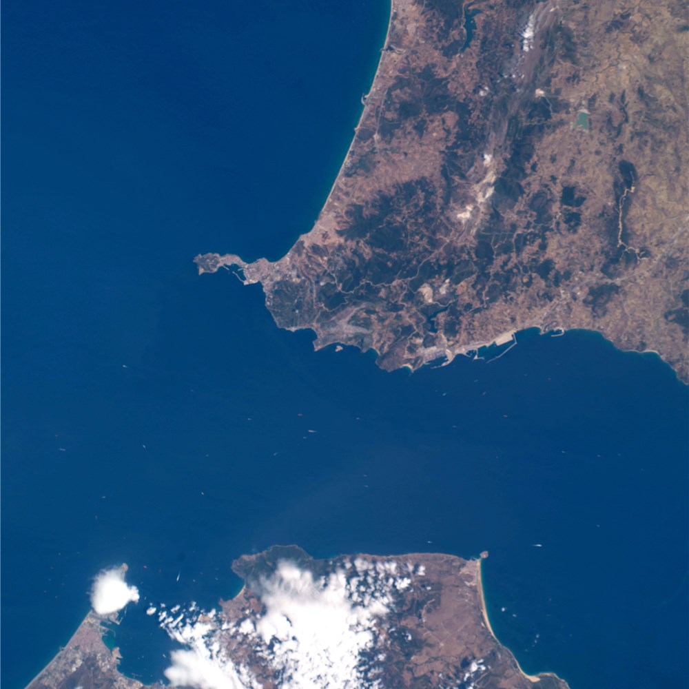 (Nella foto, lo stretto di Gibilterra, bocca dell’Atlantico e supposto limite del conoscibile. Nespoli/Nasa/Esa)